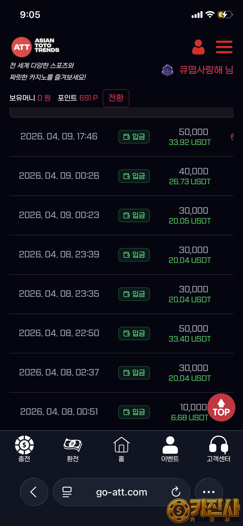 att 후기입니다 요새 제일 핫한 토토 사이트 att 거의 다들 보긴 보셨을거에요 가입쿠폰도 주고 입출금도 빠릅니다 ㅎㅎ 가족방 운영을 통해서 중간중간 이벤트도 많이 하고 사이트 이벤트는 또 별도!! 사대 맞추기 좋으니 한번 이용해 보셔요 ㅎㅎㅎ