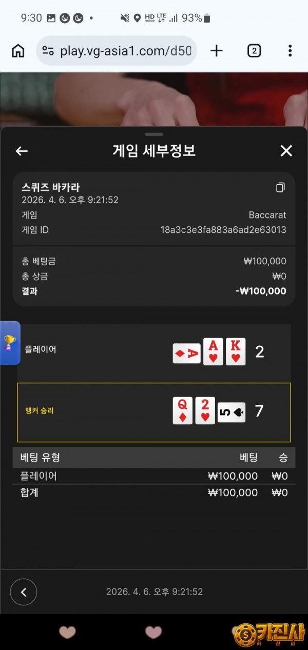 첫배팅은 승리가 가까운펻이였는데 써드카드가 너무 쎘군요